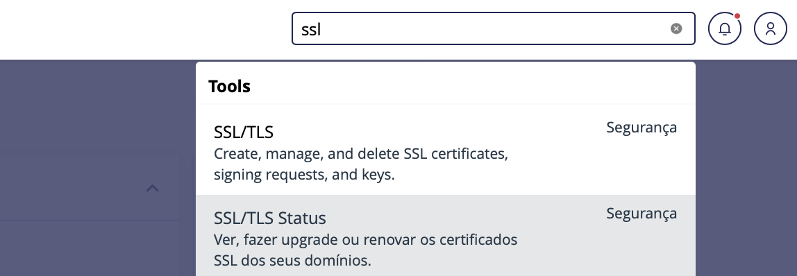 2. Localize ou pesquise a opção “SSL/TLS Status” e acesse-a.