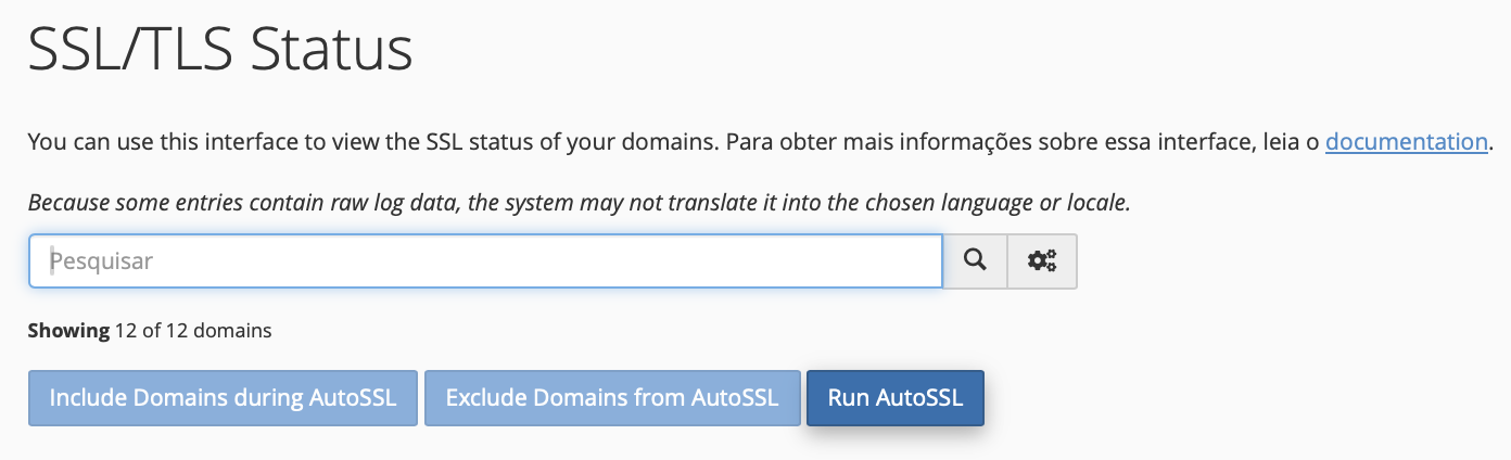 Se o seu domínio estiver sem o certificado, caderninho verde, clique na opção “Run AutoSSL” e aguarde o recarregamento da página. Quando o procedimento for concluído, você receberá uma mensagem de confirmação. Aguarde o recarregamento da página e verifique se o domínio passou a ser válido. Por padrão, o certificado ficará disponível imediatamente após ser gerado.