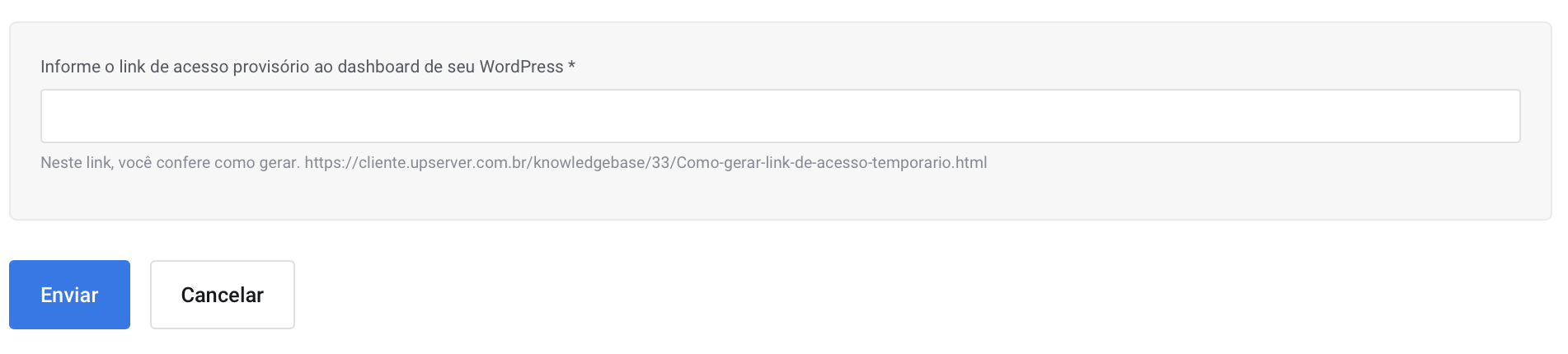 O link gerado, deverá ser fornecido a equipe da Up Server via ticket, opção Gerenciamento Avançado.